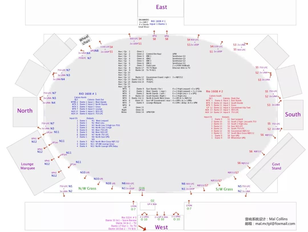 上海美思電子技術(shù)工程有限公司作為AFL官方指定合作商,自2017年起便參與其中,負(fù)責(zé)整場活動的體育展示音視頻系統(tǒng)工程。公司負(fù)責(zé)人Mal Collins更是連續(xù)三年首選Meyer Sound作為這項賽事服務(wù)的音頻系統(tǒng)支持,他介紹說:“Meyer Sound LEO家族旗下的Lina和Leopard系統(tǒng),其美觀性和便攜安裝性使我們能夠在有限的時間內(nèi)快速完成一個數(shù)量多、功率大、分布均勻的揚聲器系統(tǒng),用以覆蓋這樣一個龐大的運動場。Callisto處理器在平衡線陣列與短程投射U系列揚聲器之間提供了更多的控制功能?,F(xiàn)場雖然使用了12種不同型號的Meyer Sound音箱,但其音質(zhì)和音調(diào)的一致性令人驚嘆!”
