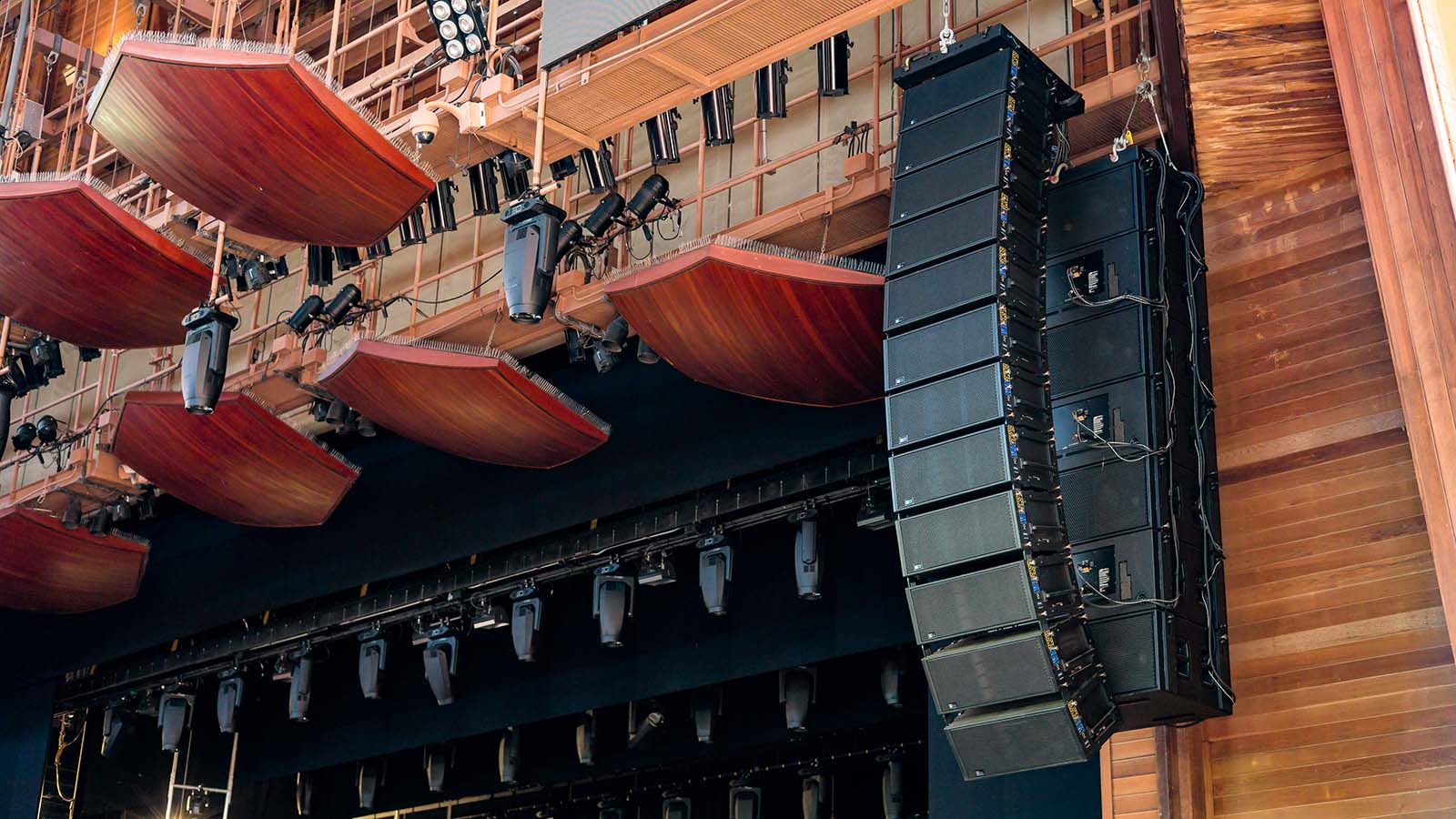 安裝完畢后,新的主擴系統(tǒng)由左右各 12 只 LYON 線性線陣列音箱,及中置陣列 12 只 LEOPARD 緊湊型線性線陣列音箱組成。每組 7 只 1100-LFC 低頻音箱組成雙梯度陣列提供強勁的低音,另搭配兩組音箱(每組各 1 只 UPQ-D2 全尺寸音箱和 1 只 ULTRA-X40 緊湊型音箱)分別用作前區(qū)補聲,7 只 ULTRA-X20 緊湊型寬覆蓋音箱提供臺唇補聲,另有 6 只 ULTRA-X20 安裝在樓座下方用于樓座補聲。系統(tǒng)驅(qū)動和優(yōu)化則由 4 臺 GALAXY 816 網(wǎng)絡平臺處理器負責處理。