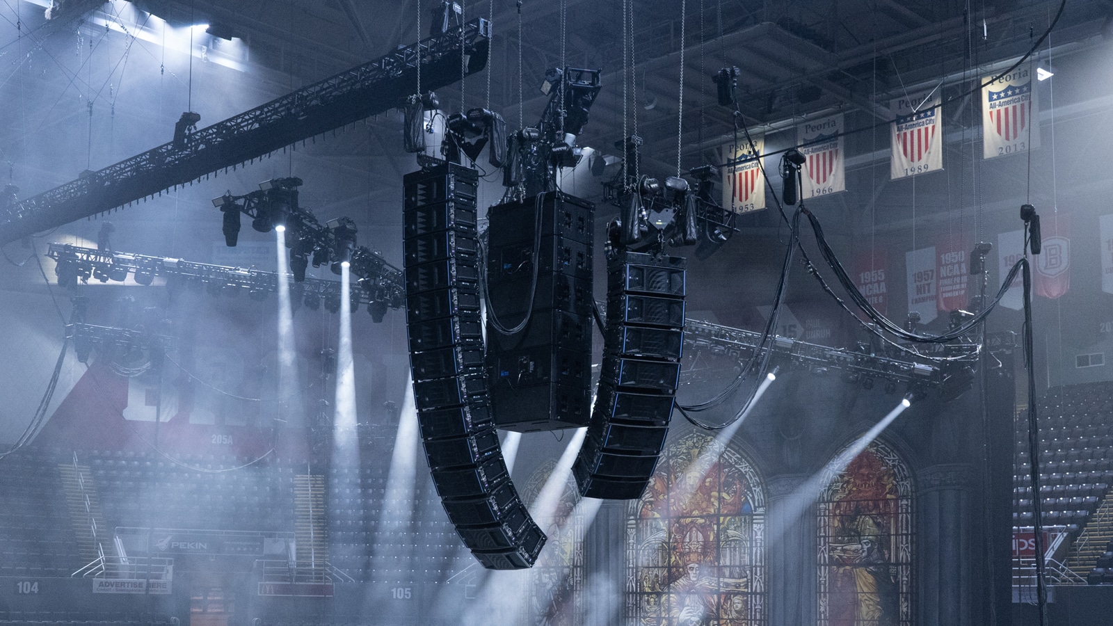 系統(tǒng)的其他部分包括兩側(cè)各吊掛 9 只 1100-LFC 低頻控制單元形成心形指向,外加地面兩側(cè)各疊放 3 只 1100-LFC 組成心形陣列,以及中央延伸舞臺(tái)下方的 2 只 1100-LFC 以增強(qiáng)低音效果。沿舞臺(tái)臺(tái)口及延伸舞臺(tái)區(qū)域另配置了 8 只 LEOPARD 音箱用作前置補(bǔ)聲。此外,還配備了 6 臺(tái) Galileo GALAXY 816 網(wǎng)絡(luò)平臺(tái)處理器,通過具有模擬備份功能的雙冗余 AVB 網(wǎng)絡(luò)連接,用以提供系統(tǒng)優(yōu)化和驅(qū)動(dòng)。
