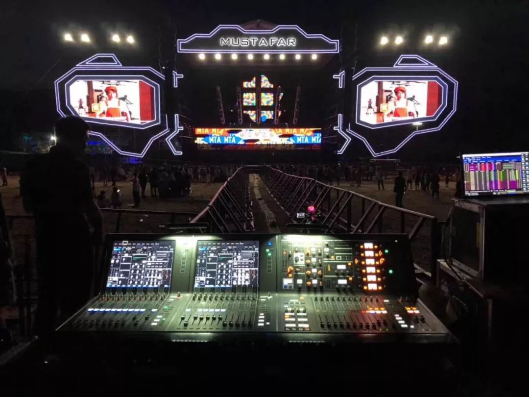 今年是S.A.G北京博生兄弟文化傳播有限公司第四次與天漠?dāng)y手,為了在空曠的沙漠中打造讓漠星人身體搖擺,血液翻滾的音樂盛宴,S.A.G現(xiàn)場(chǎng)技術(shù)總監(jiān)/現(xiàn)場(chǎng)調(diào)音師小六老師特意為主舞臺(tái)打造了一整套Meyer Sound系統(tǒng)確保現(xiàn)場(chǎng)效果,包括主擴(kuò)32只LEO-M+4只LYON-W,前區(qū)補(bǔ)聲12只LEOPARD和27只低頻1100-LFC。低頻部分共9組,每組3只(其中一只反向擺放/反相加延時(shí)),每組低頻音箱給予不同的延時(shí)從而組成心形指向超低頻陣列,并單獨(dú)使用一臺(tái)Galileo-616處理器驅(qū)動(dòng),使得低音對(duì)舞臺(tái)上幾乎沒有影響。無論是民謠還是搖滾,流行還是嘻哈,Meyer Sound總會(huì)讓你在天漠的音樂節(jié)奏里釋放壓抑的自己,做最真實(shí)的自我。