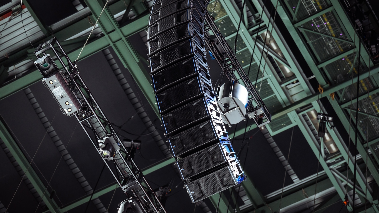 借助 MAPP 3D 系統(tǒng)設(shè)計和預測工具,Sack 與 Meyer Sound 系統(tǒng)優(yōu)化總監(jiān) Bob McCarthy 以及系統(tǒng)設(shè)計服務(wù)負責人 Alex Harbaugh 協(xié)同敲定了系統(tǒng)設(shè)計的相關(guān)細節(jié)。安裝完畢的系統(tǒng)由 8 組吊掛的 PANTHER 音箱組成,每組 12 只,全部為 80°L 型號角。2 組吊掛的 1100-LFC 低頻控制單元組成心形覆蓋陣列——每組 9 只,將強勁的低音均勻地投射到全場空間。整個系統(tǒng)采用 Milan AVB 網(wǎng)絡(luò)協(xié)議連接來進行系統(tǒng)操控、監(jiān)控和傳輸音頻信號,同時具有模擬信號冗余備份。
