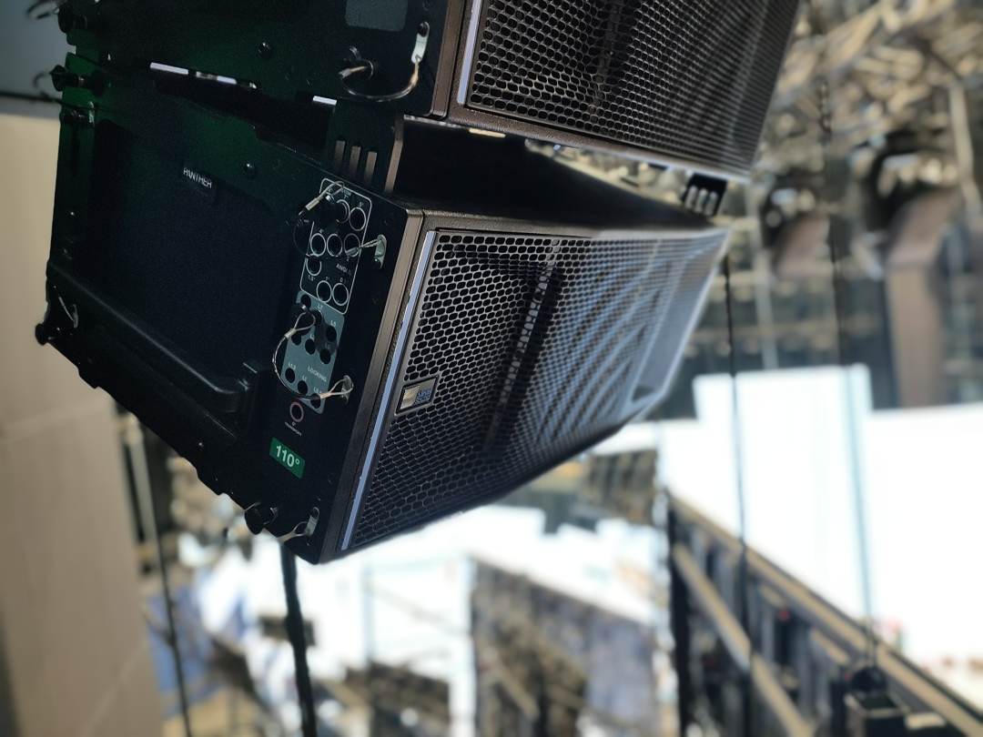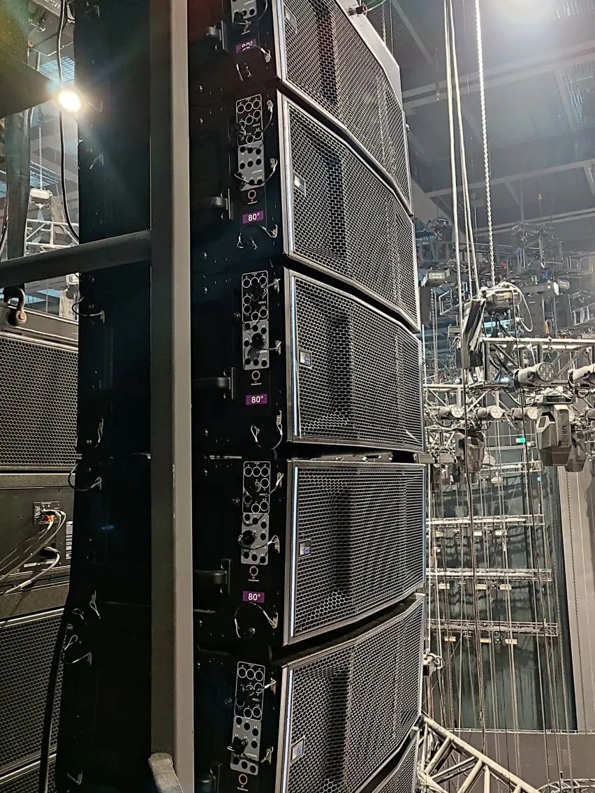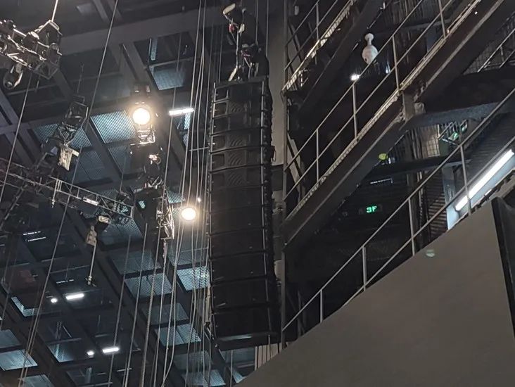 場地靠近舞臺的前區(qū)設(shè)置了VIP貴賓區(qū)域,我們使用小型的LINA線陣列揚(yáng)聲器作為補(bǔ)聲。在兩側(cè),各使用了一組LINA全頻線陣列配合750-LFC低頻組件作為左右聲道在前區(qū)的延伸。在為VIP區(qū)域進(jìn)行補(bǔ)聲的同時(shí),也改善了觀眾廳前排的聲像,前區(qū)的觀眾可以獲得一個(gè)良好的舞臺位置的聲像。