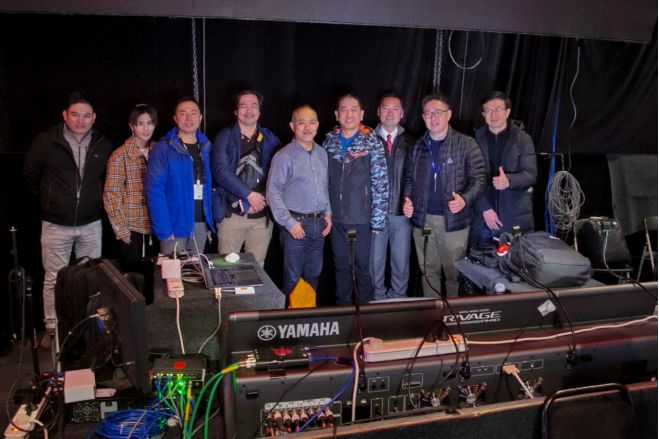 ▲ 金老師團(tuán)隊(duì)與雅馬哈技術(shù)支持團(tuán)隊(duì)在節(jié)目制作現(xiàn)場(chǎng)