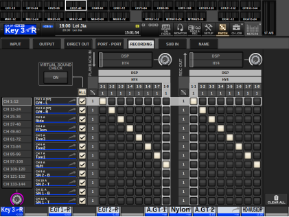 在節(jié)目中的導(dǎo)師評(píng)論環(huán)節(jié),RIVAGE PM 系統(tǒng)提供了最多 64ch 的 Dugan Automixer,為擴(kuò)聲提供了最優(yōu)化的傳聲增益。《經(jīng)典詠流傳》主創(chuàng)團(tuán)隊(duì)對(duì)音頻的后期制作也同樣重視,為了保證錄音的萬無一失,在現(xiàn)場(chǎng)有 3 臺(tái)電腦進(jìn)行 Live Recording,每臺(tái)都有超過 100 通道的音軌。其中 1 臺(tái)臺(tái)式機(jī)通過 Dante(安裝 Yamaha AIC128-D 聲卡)和 Nuendo Live 軟件進(jìn)行 128 軌的錄音,另外 2 臺(tái)筆記本電腦同時(shí)經(jīng)由 RIVAGE PM 系統(tǒng) DSP 上的 MADI 板卡通過 Recording 功能為電腦分配信號(hào),并且同時(shí)可以通過 Virtual Sound Check 功能實(shí)現(xiàn)錄音工程師或現(xiàn)場(chǎng)導(dǎo)演對(duì)于分軌錄音實(shí)時(shí)回放的需求。