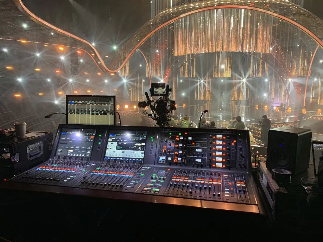 錄制棚內(nèi)的主擴和返送音箱使用了Meyer Sound品牌的音箱。根據(jù)現(xiàn)場舞臺寬度和觀眾區(qū)域的布置,主擴系統(tǒng)采用左中右聲道的設(shè)計。主擴系統(tǒng)的左右聲道使用單邊8只Leopard和4只900-LFC覆蓋環(huán)形的觀眾區(qū)域。中央聲道由6只吊掛的Leopard音箱組成。