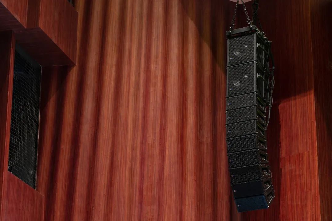 宛平劇院音響系統(tǒng)選用了Meyer Sound揚(yáng)聲器。舞臺(tái)兩邊各吊掛一串由8只LINA揚(yáng)聲器組成的線陣列作為主體擴(kuò)聲,中央聲道使用了與左右主擴(kuò)相一致的8只LINA揚(yáng)聲器組成的線陣列,并且配置了4只750-LFC超低頻揚(yáng)聲器與左右主擴(kuò)吊裝組合,作為獨(dú)立的低頻增強(qiáng)通道使用,擴(kuò)展擴(kuò)聲系統(tǒng)的低頻下限,增強(qiáng)音樂表現(xiàn)力。